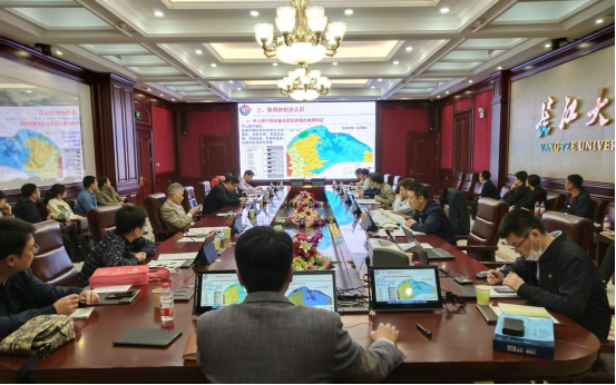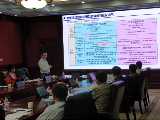 (通讯员韦志浩)2021年4月21日,中海油天津分公司南黄海盆地两个科研项目中期检查验收在石油科技大楼A区多功能会议厅举行。参加会议的有中海油天津分公司研究院李其正院长、牛成民地质总师、杜晓峰首席等专家,中国地质大学(武汉)梅廉夫教授和沈传波教授团队主要成员、长江大学何幼斌教授和罗进雄副教授团队的主要成员参加了此次会议。本次会议由中海油天津分公司研究院黄海勘探室杨波主任主持。中国地质大学(武汉)的沈传波教授和长江大学的罗进雄副教授分别代表各自团队汇报了项目的研究进展和所取得的阶段性成果。汇报结束后,与会专家充分肯定了两个项目所取得的阶段性成果,同时提出了存在的问题和下一步的工作建议。