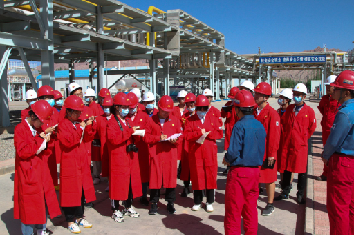 后续的日子里,在油田单位的安排下,同学们前往塔里木油田英买油气开发部、迪那油气开发部开展现场实践学习,每天与石油工人同吃同住,现场感受油田工作内容。先后参观了英买油气开发部的文化长廊、实地调研英买处理站、参加了英买油气开发部工作人员与长江大学师生座谈会、参观学习英古1-3井、英买2-12-4井、英买2-15-C井、实地调研迪那处理站、参观学习迪那2-1集气站、DN2-2井。通过现场观摩、座谈会交流,让实践队员们更深刻体会到建党百年塔里木油田之巨变,切身体悟“塔里木石油精神”的深远历史影响和重要现实意义,认识到石油人的初心与使命以及“石油精神”的生机活力、与时俱进。