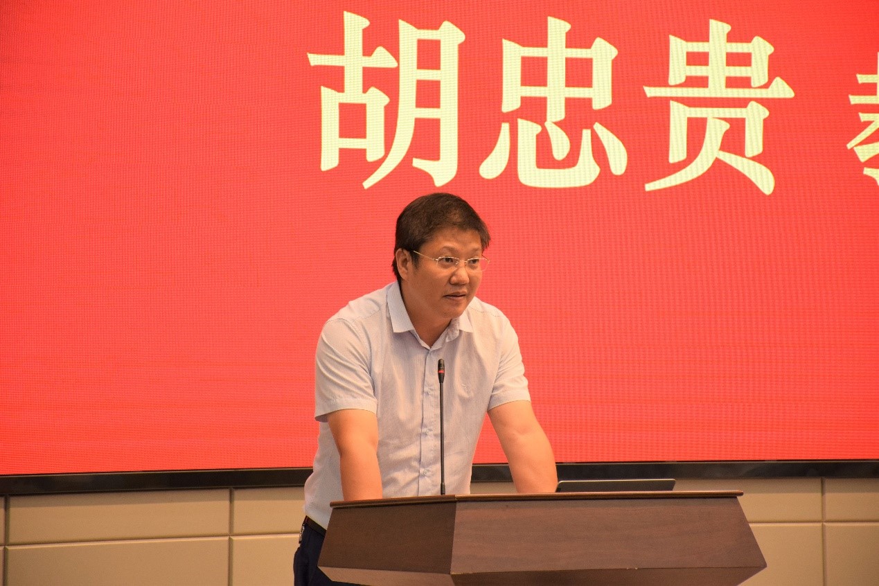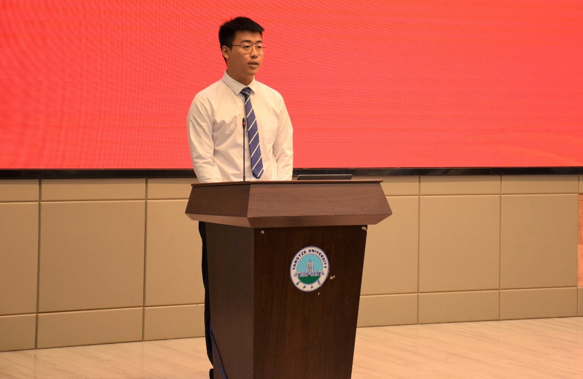接着,导师代表胡忠贵教授上台讲话。他回想了自己从98年考上长江大学,从本科到博士多年的学习生涯,让他坚定了自己的努力方向,积极地投身到了地质工作中。之后,他希望,同学们有明确的理想和近期的目标,有坚持不懈的耐力,学会如何写一篇好论文,做好与人交流的准备,珍惜时间,珍惜现在,珍惜安静美好的校园环境,能够学有所成。