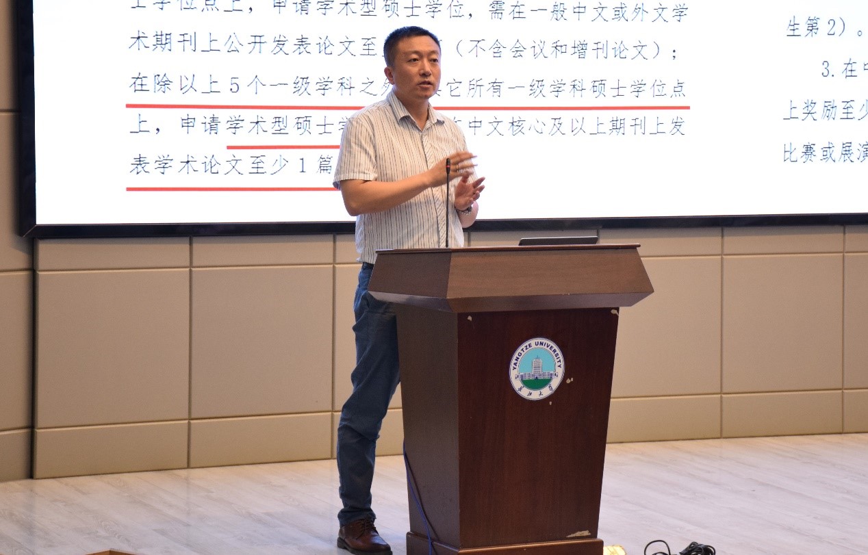 “金碧 会如何培养大家呢?大家现在毕业需要什么要求呢?金碧 的奖学金政策是什么样的?下面,我给大家一一解答。”副院长吴楠上台讲道。关于培养流程,他介绍了学制、培养计划、补修课程、中期考核、毕业答辩等方面的内容。关于毕业要求,他详细介绍了不同情况的同学必须达到的论文发表的级别和数目。关于毕业论文的外审要求,他提醒大家,一定要好好学习,写好毕业论文,外审的要求只会越来越严格,希望同学们能按照规定执行,努力使自己成为德才兼备的黄金一代。