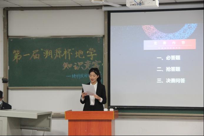 分团委联合推出第一届“溯源杯”新生地学知识竞赛,并于12月5日晚19时在武教A-102成功举办,《普通地质学》课程组全体教师参与竞赛知识筹备。教师代表张尚锋、何幼斌、胡忠贵、王雅宁、易雪斐老师担任本次比赛评委,党委副书记任倩、学工办郭霖、王红桥老师参会。