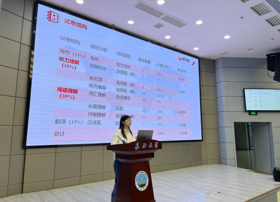 于长江大学武汉校区学术报告厅举行英语四级阅读技巧专题讲座。本次讲座由新文道英语名师段依莎主讲,学工办姚佳老师、黄瑱老师出席,2022级357名本科生全员参与。