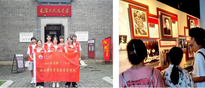 图3 实践队员在毛泽东旧居纪念馆前合照及参观毛泽东旧居纪念馆
