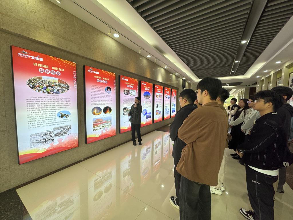 在教育馆内,学生党员们列队前行,参观了野战国防园内陈列的飞机、坦克、自动步枪等数百件我军各历史时期内等比例缩小的轻型武器装备模型,实地感受了“国之重器”的强大力量,深切体会到国防建设的重要意义。在讲解员的介绍下,党员同志们了解到了不同时期国防发展历程。