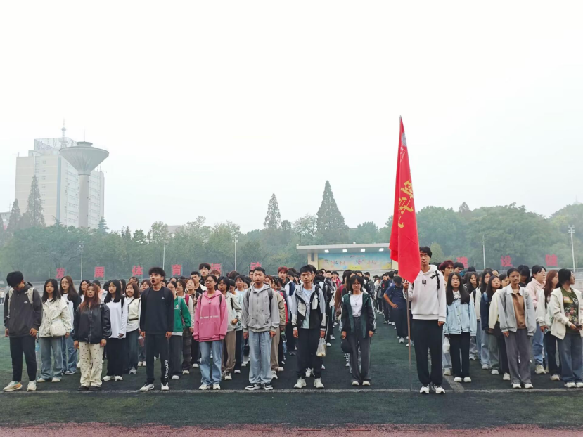 大一新生和年级辅导员赵娥在东校区田径场参加了升旗仪式。 清晨,阳光洒在校园,同学们身着整齐,早早地来到了升旗地点,以饱满的精神状态等待着仪式的开始。