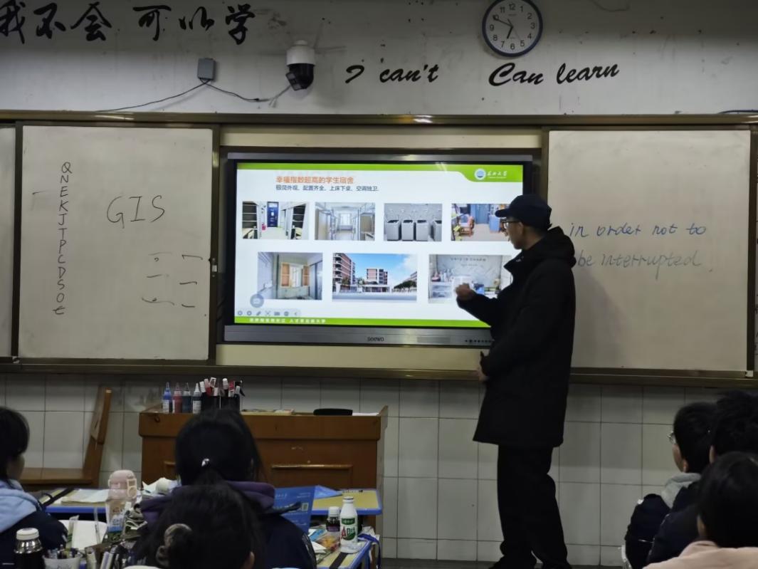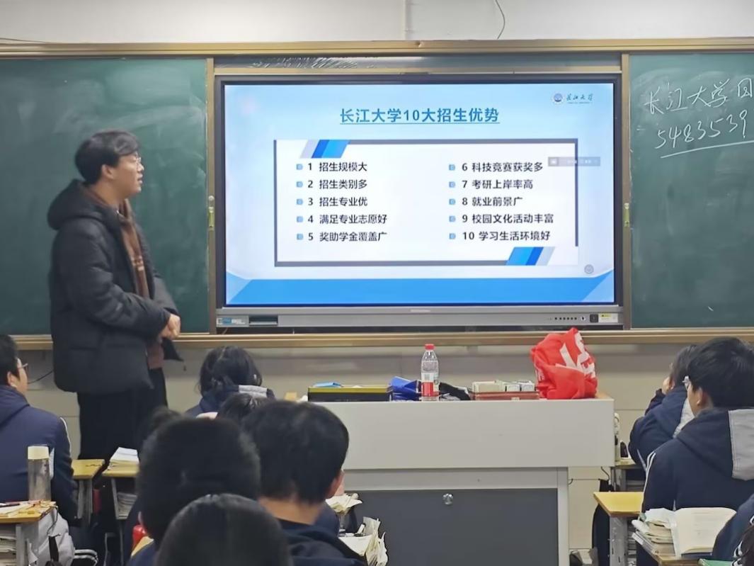 地信12401班的许康旺同学向母校的同学们分享了自己在长江大学的成长经历,介绍了学校的办学特色、学科实力和科研成果,搭建起了长江大学与高中母校之间的桥梁。在互动交流环节中,他耐心解答了学弟学妹们提出的关于录取分数线、专业设置及就业前景等问题。他的细致解答如同一针强心剂,为学弟学妹们紧张焦虑的高三生活带来了安慰与指引。