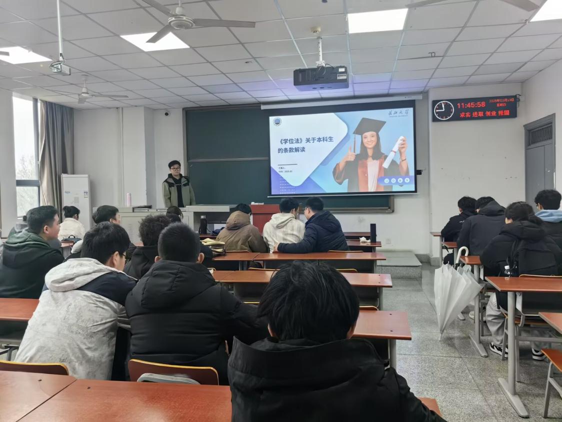 举行了《中华人民共和国学位法》的学干培训会。各班级班长、团支书、学习委员等学生骨干积极参与,培训会旨在深入学习《学位法》,推动学校学位授予工作的规范化与科学化。