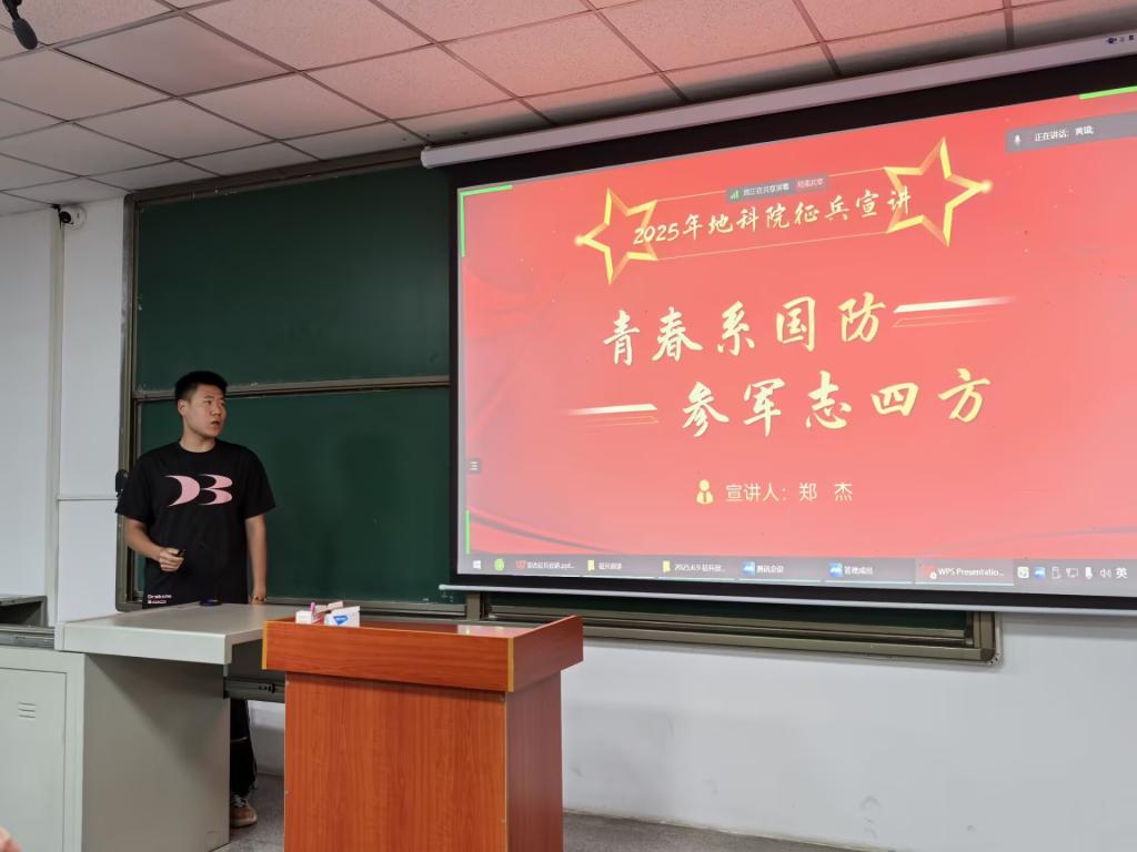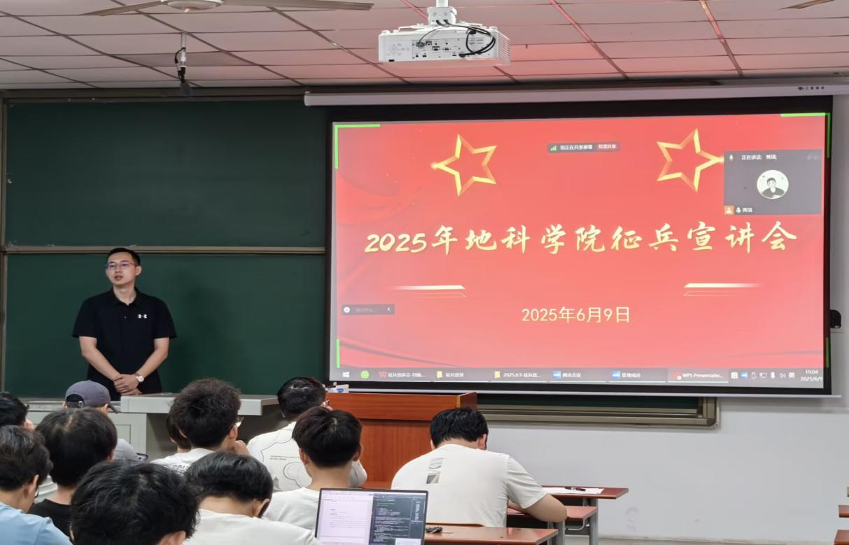 征兵宣讲会在武教B202以线上线下融合方式举行。会议由退伍士兵郑杰、朱正康担任主讲,辅导员黄瑱老师主持,400余名学生参与活动。