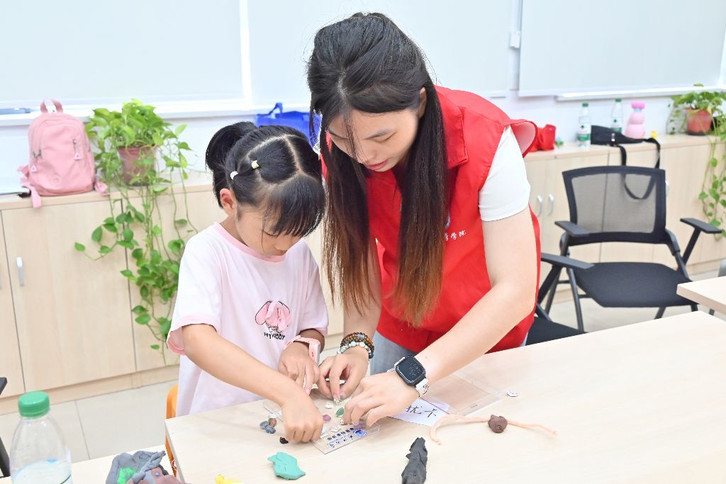 在整个活动过程中,孩子们对科普的地学知识表现出了极高的热情和积极性,踊跃提问、积极思考。课程最后一个环节,志愿者们为孩子们发放了精心准备的12种岩石标本以及标本展示盒。主讲人王依林耐心地带领大家认识这12种标本,并引导孩子们亲自动手制作属于自己的岩石标本盒。制作过程中,孩子们全神贯注,充分发挥自己的创造力和动手能力。遇到不熟悉的标本时,他们会主动向周围的志愿者老师请教,现场学习氛围十分浓厚。