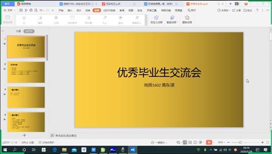 31日晚7点,首先向大家交流分享的是来自地信21601班的柯莹同学,她分别从学习方面、学干方面、课外实践方面跟同学们交流分享。学习上,她介绍了英语四六级的重要性和自己的备考方法;同时也告诫学弟学妹们要认真对待专业课,最后还分享了一短话:“去做你想做的事吧,不会有比现在更好的时机了。”在柯莹同学介绍完后,由来自地信(产业)21601班的李鹏同学跟大家分享交流,他先进行了简单的自我介绍,紧接着分享了自己大学期间的学习生活等,主要向大家交流了自己在考研过程中遇到的困难和解决方法,他认为考研相当于两个战场,一个是信息收集战,一个是精力持久战,最后他还给同学们提出了三个建议:一是以学习为主,学干为辅;二是多交朋友;三是认识自己,合理规划。最后,是由来自地信21602班的卜明伟同学与大家分享交流。关于大学学习,他在分享经验的基础上,还详细介绍了金碧