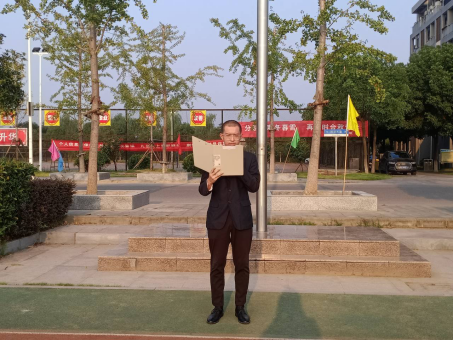 师生在操场举行了武汉校区第二周升旗仪式。金碧
