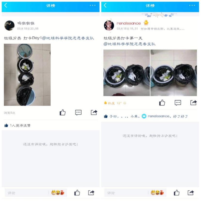 在实践部各成员的宣传下,许多学生积极响应,在到梦空间中积极咨询该活动,并在自己QQ空间上传自己寝室垃圾分类的活动照片,积极呼吁周围的人参加活动,响应此次垃圾分类活动,造成了积极的影响。