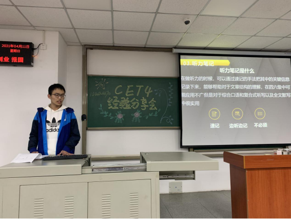 于4月11日晚19时分别在武教B-104和B-106教室举行了“2020级四级动员大会”。大会包括模考情况分析、提升计划安排和“学长学姐引领计划”之四级学习方法分享三个方面的内容,金碧娱乐场