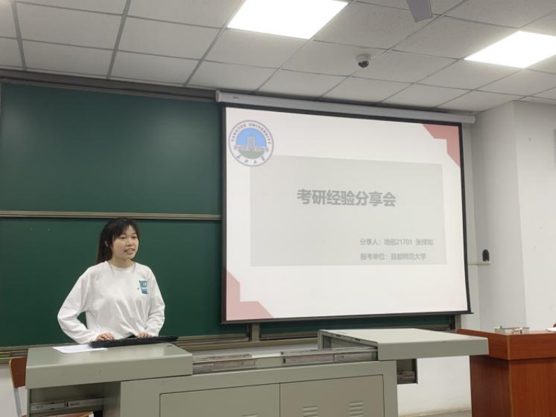 地信专业的分享会邀请到了地信(产业)21701班周宁和地信21701班张怿如两位同学,他们分别以优异成绩被武汉大学、首都师范大学录取为硕士研究生。周宁用自己的考研经历强调了真题的重要性,建议大家做好考研的时间管理,克服备考期间的焦虑情绪,就能收获成功。张怿如则详细告诉大家如何进入复习状态、如何保持好的状态以及考前的心态该如何调整,会上她还分享了考研期间的作息时间表,希望帮助大家合理规划、有效复习。