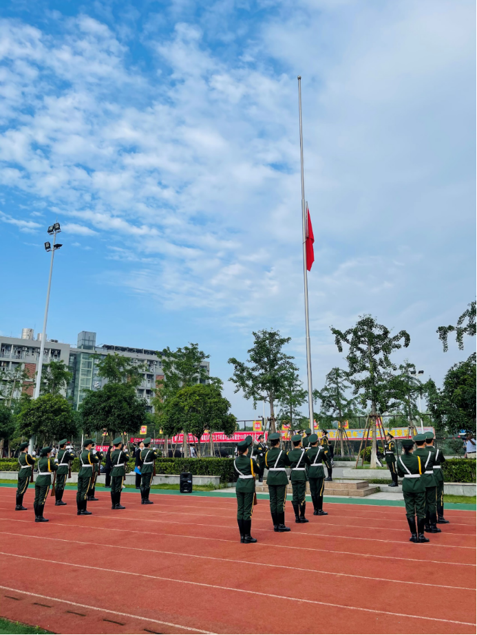 全体师生向国旗行注目礼,心怀对祖国无限的热爱和崇高的敬意。