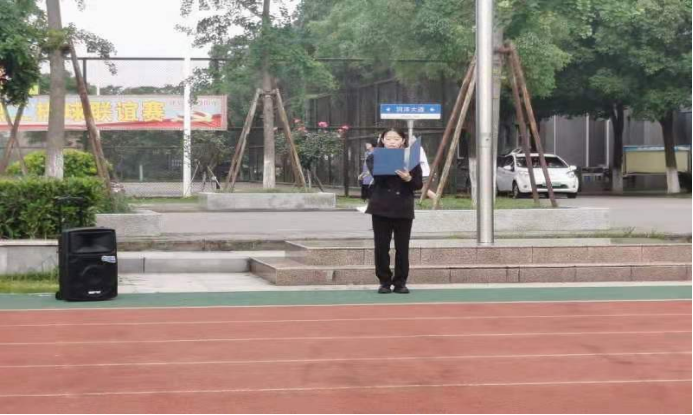 升旗仪式开始前,全体师生进行“唱红歌”环节。在资工22004班和院学生会同学们的带领下,全体同学满怀热情,先后齐唱了《国家》和《闪闪的红星》,两首歌曲,嘹亮的歌声响彻整个操场。