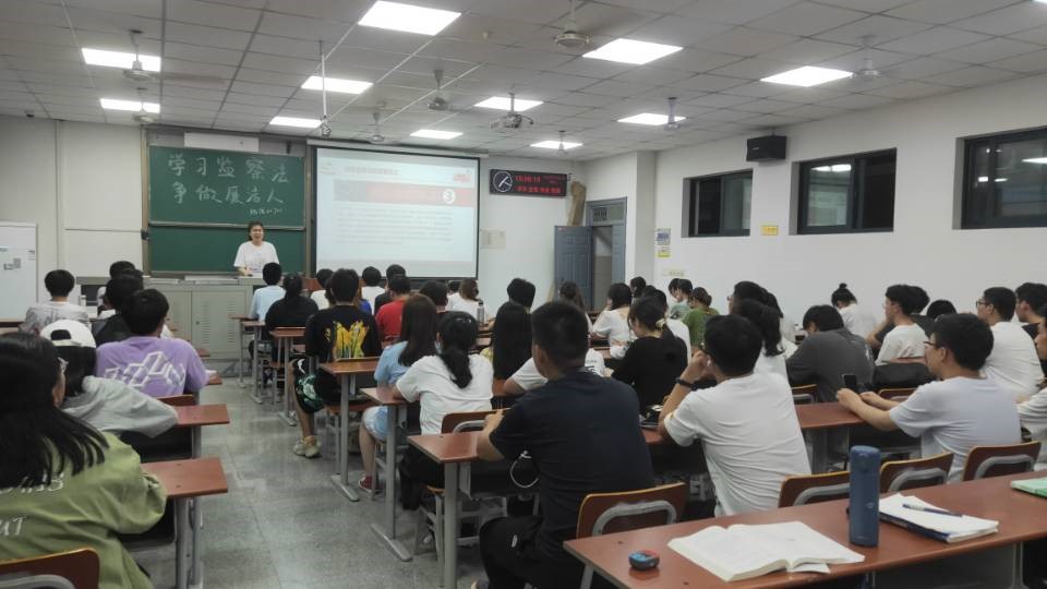 2017级毕业生在年级辅导员的组织下,于6月1日在各班教室展开了以学习《国家监察法》为主的主题班会。