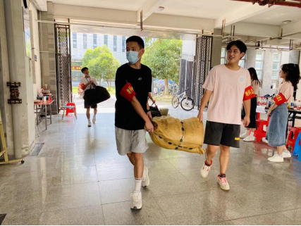本科生和研究生党支部迅速出动,65名党员志愿者积极响应,一天内组织起党员先锋队,他们和数十名院团委学生会干部一道,配合校区行李转运车,扎根寝室协助新生搬运行李,实现新生入住“一条龙”服务。