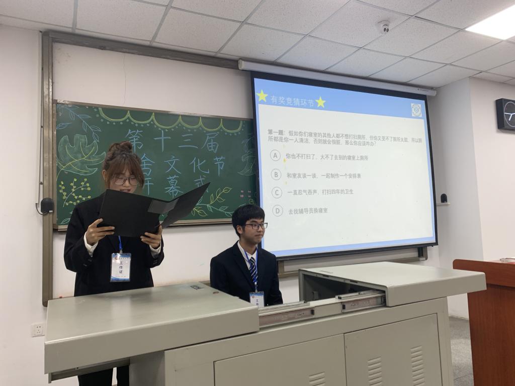 将举办第十三届宿舍文化节活动。为了活动的顺利开展,10月29日晚7时,宿舍文化节开幕式于B-105教室如期开展。参会嘉宾有金碧娱乐场