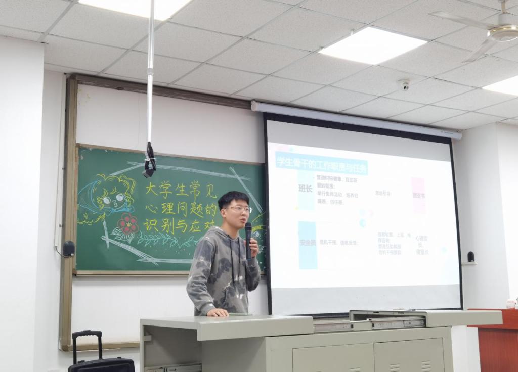 (通讯员 代开宇)为有效激活我校危机预警与干预网络,提升新生骨干自助与助人的水平。2021年11月20日19:00,145名本、研究生新生骨干汇聚在武教A105进行“岗前培训”。活动由金碧娱乐场
