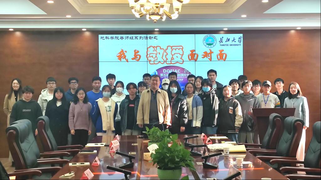 地信系何贞铭副教授主讲,党委副书记任倩主持,辅导员王红桥、郭霖以及20、21届30余名同学参加。
