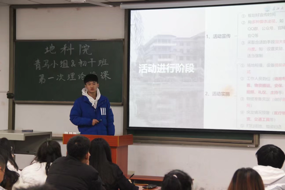 最后,由资卓21901班的陈星兆讲解班团学生活动的组织方法和技巧,他分别从前期策划、进行阶段以及后期总结三个阶段详尽讲述整个活动的组办流程,满满的干货,沉淀的不仅是经验知识,更是对今后工作的深切期待以及对青马小组和初干班的深厚情感。讲解层层递进,逻辑分明,语言幽默风趣,事理与情理俱佳。