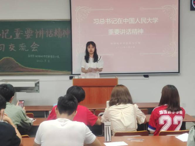 “青岚”二组的吕品扬同学结合自身实际分享了自己的感悟,认真思考总书记强调的那句“为谁培养人、培养什么人、怎样培养人”,他认为身为一名地质专业的学生,要努力学习好专业知识,用自己的专业能力去丈量我们脚下的每一块土地。