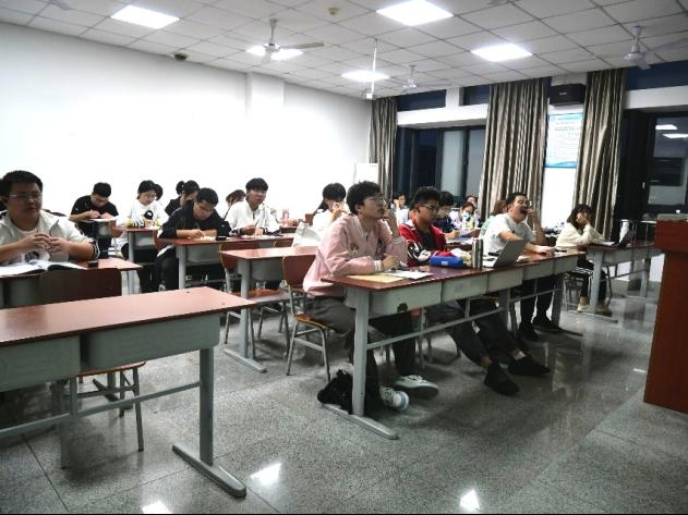 与新文道教育合作,为21级本科生开设四级英语考试专题培训班,于5月15日晚19时举行最后一场:作文专题讲座。因校园疫情防控,讲座采取线上直播的方式进行,辅导员王红桥老师与21级全体学生在自习室一同参与学习。