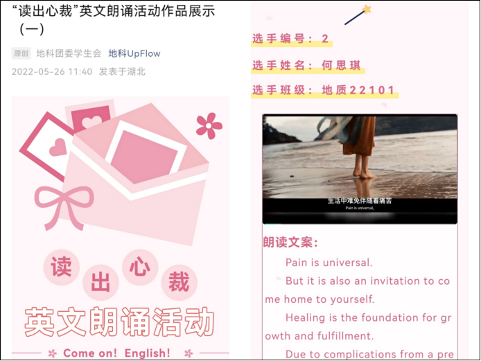 特举办“5.25读出心裁”英文朗诵活动。