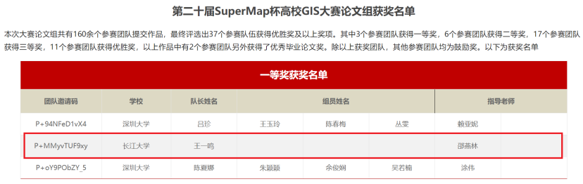 20级研究生王一鸣在导师邵燕林的指导下,凭借《基于地质特征的空间检索方法》一文在全国160余个作品中突出重围,代表长江大学获得了大赛一等奖。