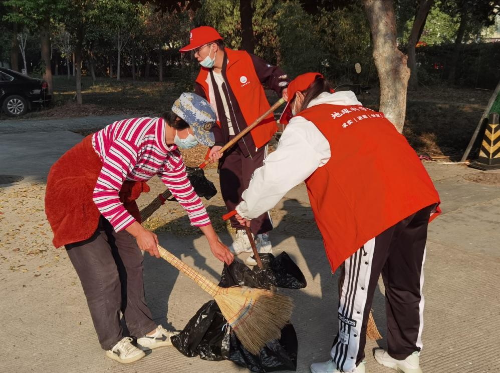 本活动分为上、下午两场。上午8时和下午2时,每场二十多位成员集合拿好工具后,便出发前往指定地点。进喜路、知音路、子期路等主干道上,随处可见身同学们穿着红马夹忙碌的身影。有的挥动着大扫把把地上的落叶聚在一起,有的拿着簸箕把落叶铲到垃圾车里,还有的帮后勤阿姨撑垃圾袋……大家有条不紊的分工合作,干劲十足,不一会额头上就满是豆大的汗珠,手上也少不了被扫把勒出红印子。阳光洒满校园,同学们积极的劳作,展现了当代大学生不怕脏、不怕累的精神风貌和蓬勃朝气。每场两个小时的清扫工作结束后,校园道路焕然一新。同学们看着在自己努力下变得干净的校园,内心的自豪与喜悦油然而生。
