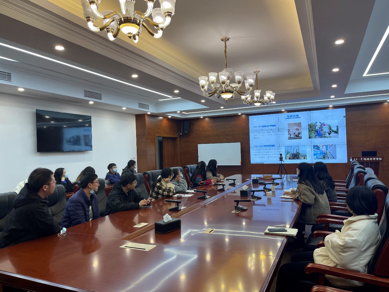 连线进行线上“云招聘”。宣讲会由浙江省第一地质大队程雨佳和王子良主讲。辅导员张严老师以及20级研究生在石油科技大楼C201会议室参加此次招聘宣讲,部分同学线上参与。