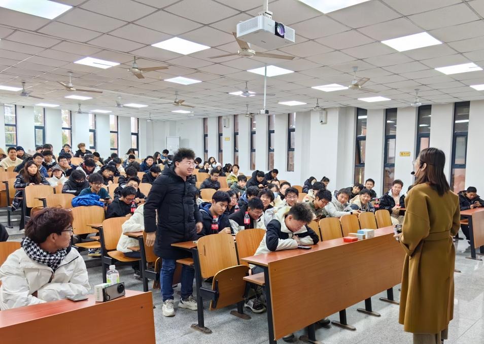 随后王老师对常见心理问题、心理疾病进行科普,并通过一起宿舍人际矛盾的案例让同学们认识到善于倾听、学会共情的重要性。王老师还讲解了长江大学心理体系,让大家感受到金碧