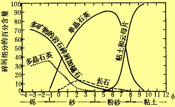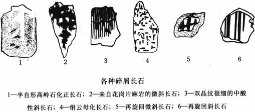 长石在碎屑岩中的含量少于石英,主要来于花岗岩和花岗片麻岩。