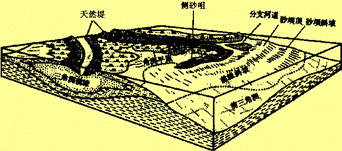 泻湖、障壁岛、潮坪、河口湾沉积环境示意图