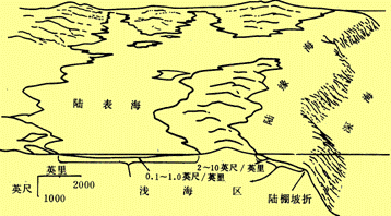 ③很浅的:水深一般只有几十米,一般不超过200m。