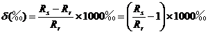 Rs :为样品的同位素比值;Rr:为标准的同位素比值。