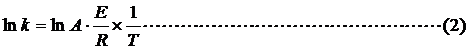 速度常数k与时间是线性相关,k由阿氏方程求得: