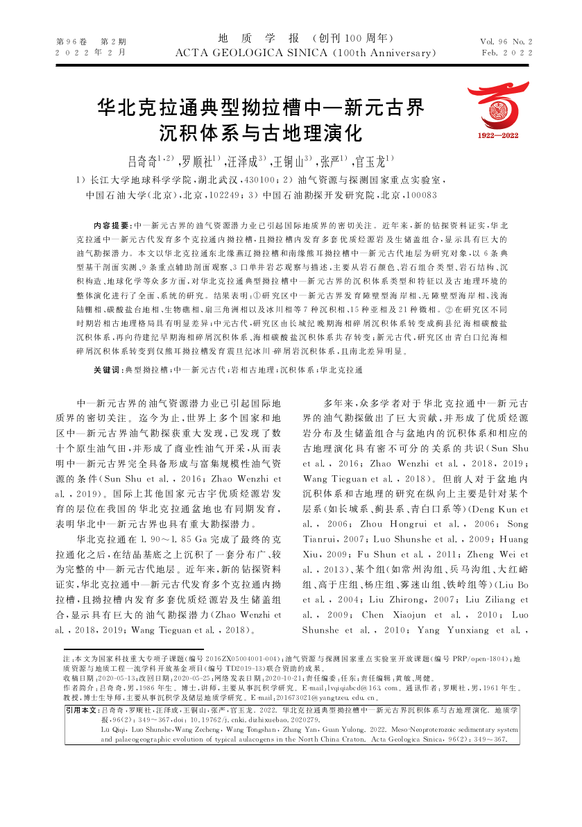 金碧娱乐场 教师吕奇奇副教授以第一作者身份在石油领域重要期刊《地质学报》发表题为《华北克拉通典型拗拉槽中—新元古界沉积体系与古地理演化》的研究论文,该项研究得到了国家科技重大专项子课题、油气资源与探测国家重点实验室开放课题和地质资源与地质工程一流学科开放基金项目的资助。