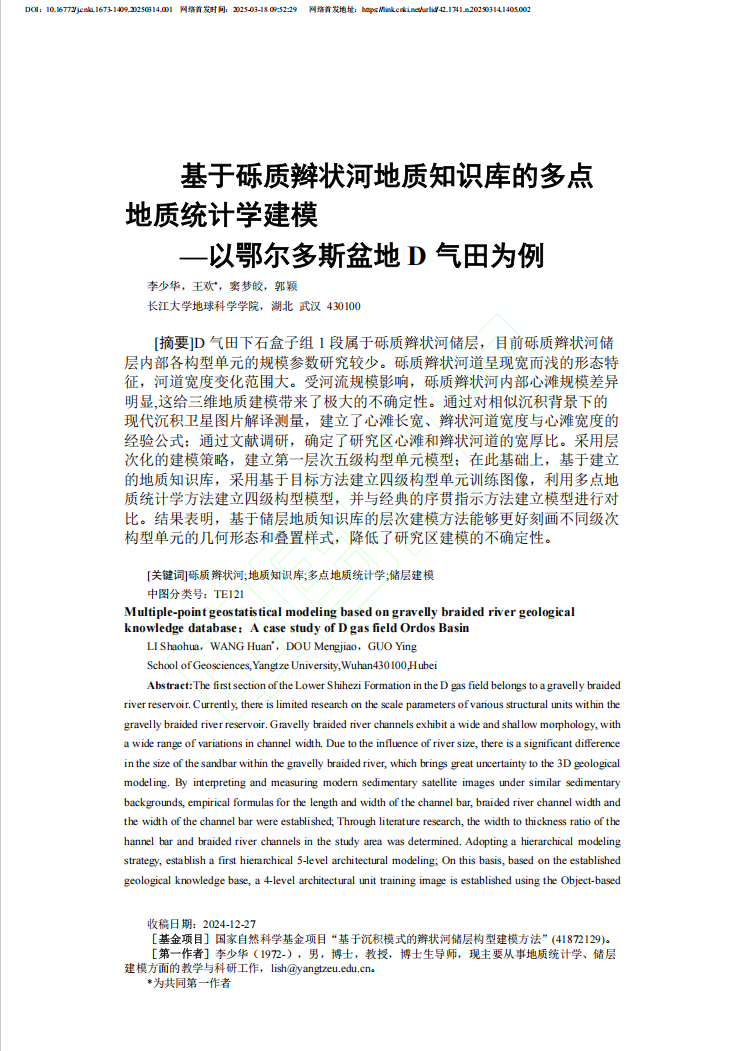 硕士生王欢在期刊《长江大学学报(自然科学版)》上发表了题为“基于砾质辫状河地质知识库的多点地质统计学建模——以鄂尔多斯盆地D气田为例”的研究论文。金碧娱乐场