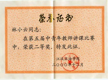 第五届青年教师讲课比赛二等奖。