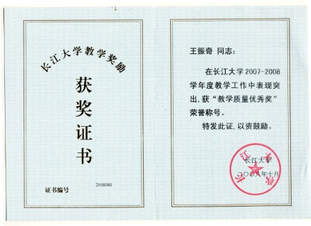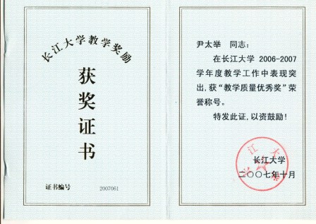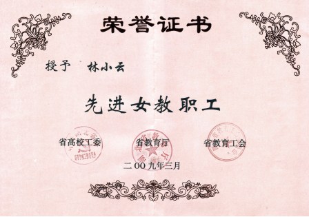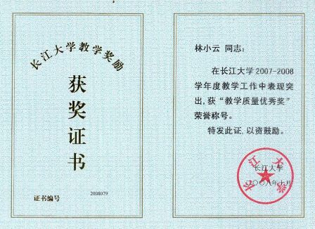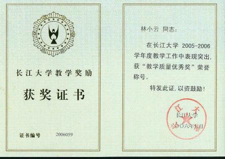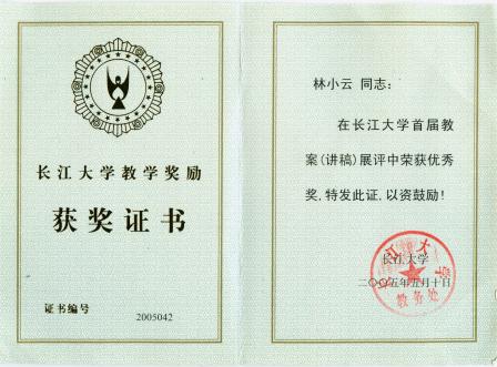 第五届青年教师讲课比赛二等奖,所指导的资工981班考研上线率达76.4%,2008年获湖北省教育系统先进女教职工。课程组成员2005年度被授予长江大学“学生最喜爱的老师”和优秀班主任。